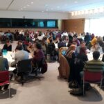 Participants arrived quite on time, many having slept at a hotel in the city center. They proceeded to their allotted tables, where they were met with a smile by very attentive (and skilled) moderators and observers. Water, tape recorders, paper and pens on the tables and we were all set for a fruitful discussion. Six tables started discussing climate change, the other six vaccines. In a side room, our colleagues from Valencia and Lodz watched the proceedings. Filmmakers from Danmar went around the tables, taking pictures and filming the discussions. After an hour or so, all issues covered, everybody headed to the adjacent corridor for a well-earned break.