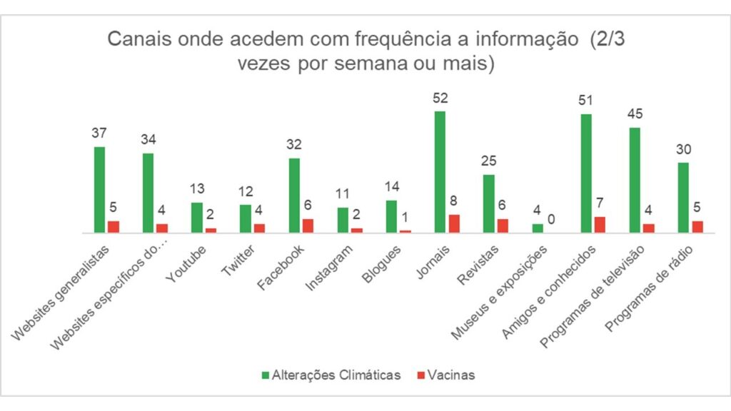 The CONCISE presentation was made available on May 12. It was a challenge to put all the main ideas of the project and some preliminary results in only three minutes. So, after a brief presentation of the project and its methodology, we focused on the Portuguese case, showing some infographics about the public consultation held in Lisbon on November 16, 2019. Additionally, we decided to show some quantitative data (based on short surveys applied during the consultation) comparing climate change and vaccines on the frequency participants accessed scientific information from different sources, their credibility, and the frequency they accessed contents related to the topics in both mainstream and digital media. Some of our brief conclusions were related to the fact that international sources were more used in climate change than in vaccines, in which national sources of information prevailed. In both topics institutional sources are considered very reliable when compared to companies, for example. And the access participants have to climate change information is much broader and intense in both mainstream and digital media than vaccines information.
