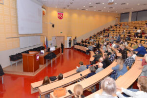 They are already queuing for registration. They must sign the attendance list, fill out several forms (including a consent to be video filmed). The youngest is 6 years old. They will not discuss at the tables – they came because their parents decided to join the consultation and took advantage of the opportunity to bring their children with them. The Ph.D. students will look after the children, and we have planned a cinema for them as one of the attractions. Such a transformation of a lecture hall into a cinema was possible due to the equipment available, i.e. a projector, screen, blinds on the windows. Later – after lunch – they will play board games, puns, and draws. Maybe we will meet with them again during lectures when they become students of our university?