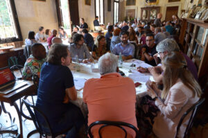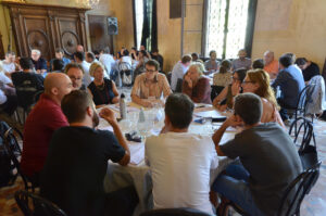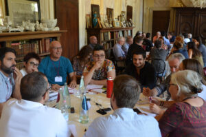100 participant citizens had been selected to represent the diversity of Italian population in terms of age, gender, origin and educational backgrounds. Many travelled from their hometowns on Friday and spent the night in a local hotel. Early on Saturday morning, a shuttle bus carried the participants to the Villa. Following registration, citizens sat in roundtable groups of 8-10 people. Prof. Giuseppe Pellegrini welcomed them on behalf of Observa and the CONCISE project, and thanked them for their willingness to take part as volunteers. He introduced the project and agenda for the day, followed by tips to understand the dynamics of the encounter. Each person was to participate in four discussions (vaccines, climate change, complementary and alternative medicine, genetically modified organisms)) throughout the day. Besides the citizens, discussion tables comprised moderators to guide the discussions, and observers. Observers mission was to take notes for helping the transcription work. Between discussions, participants had time to rest, eat and get to know each other. The working day ended at 6 pm with an aperitif for participants and the Observa Science in Society collaborators (staff, facilitator, moderators, observers) who made the consultation possible.